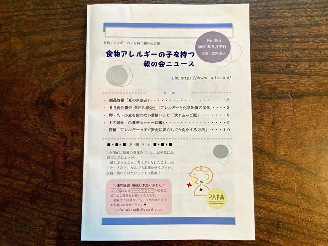 関東から定期的に来られるお客さまから、『食物アレルギーの子を持つ親の会ニュース』という冊子をいただきました。