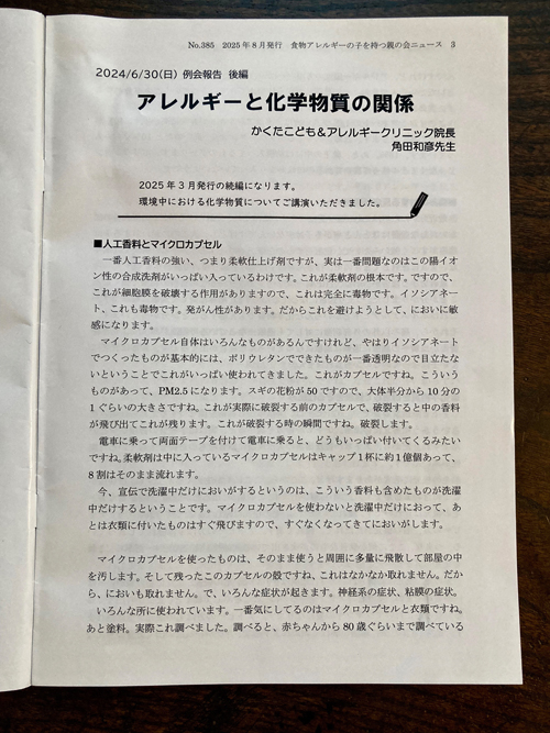 その中に、表題の「アレルギーと化学物質の関係」という記事(角田和彦医師の講演を文字起こししたもの)があったので、要約してご紹介したいと思います。